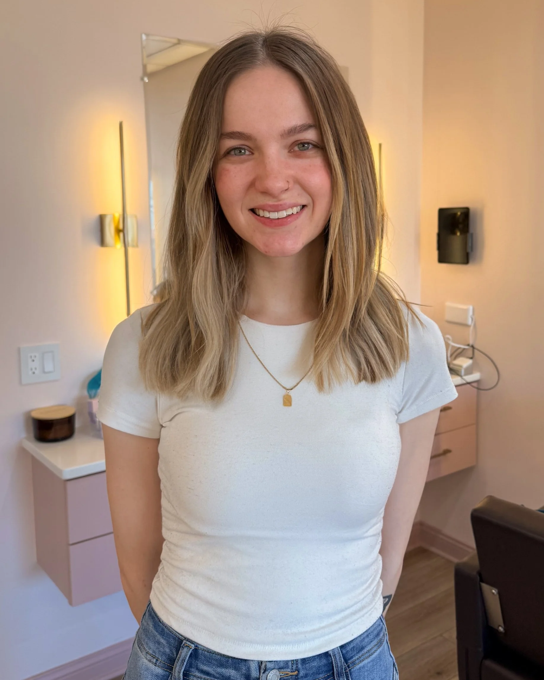 In my chair, you can expect not only beautiful results but a fun, uplifting experience. I want your reservation to feel like catching up with a friend — relaxed, positive, and something you genuinely look forward to. Hair days should be exciting, and I love bringing that energy to every guest who sits with me.